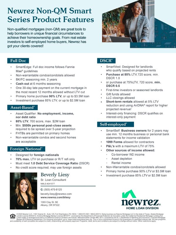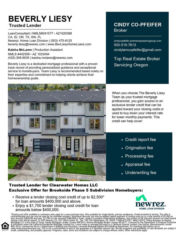 At ClearWater Homes, we understand that building or purchasing a new home is one of life’s biggest investments. To make the process smooth and stress-free, we’ve partnered with Beverly Liesy, Senior Loan Consultant with Newrez Home Loans, to provide our clients with trusted financing solutions.
